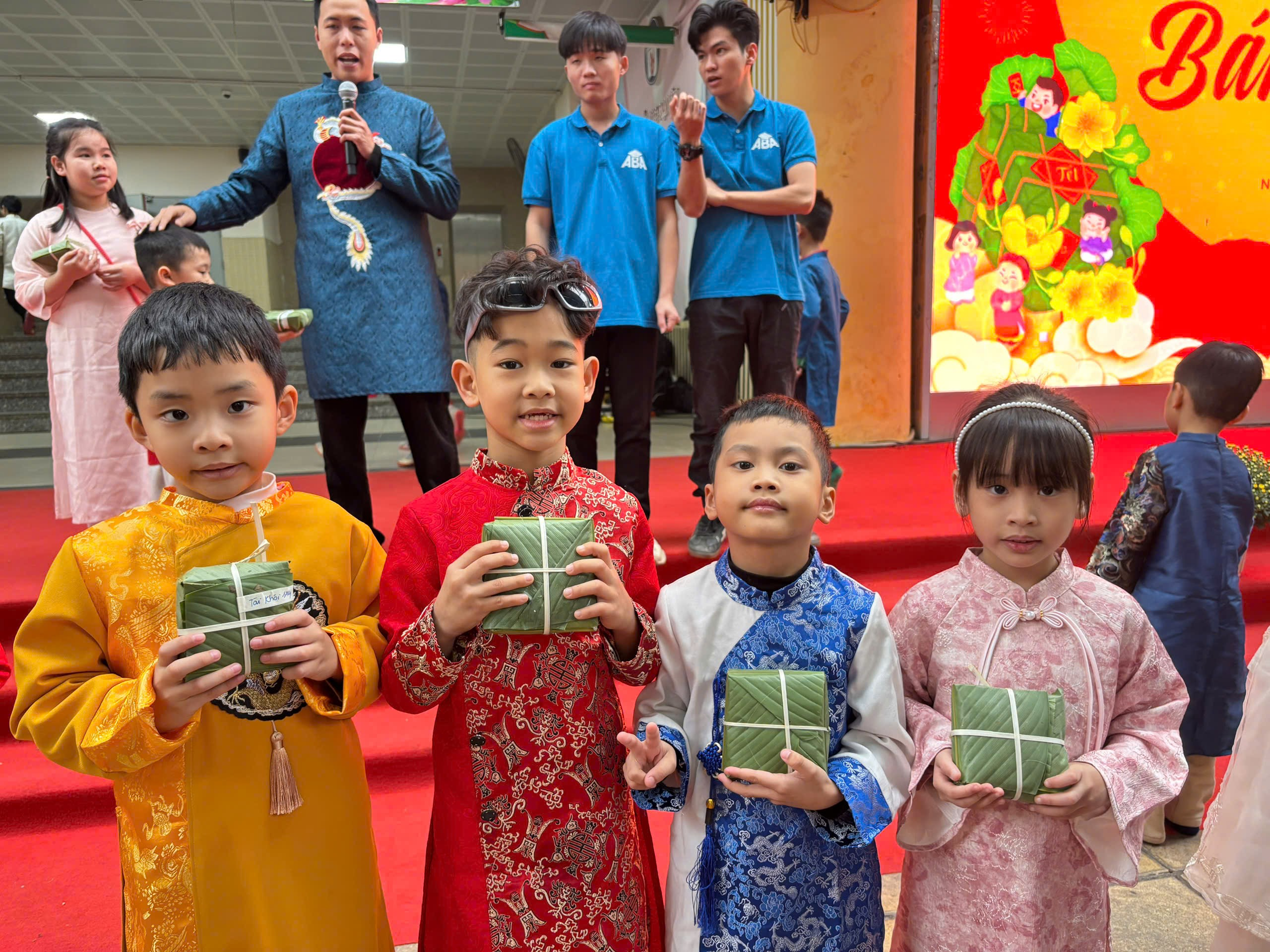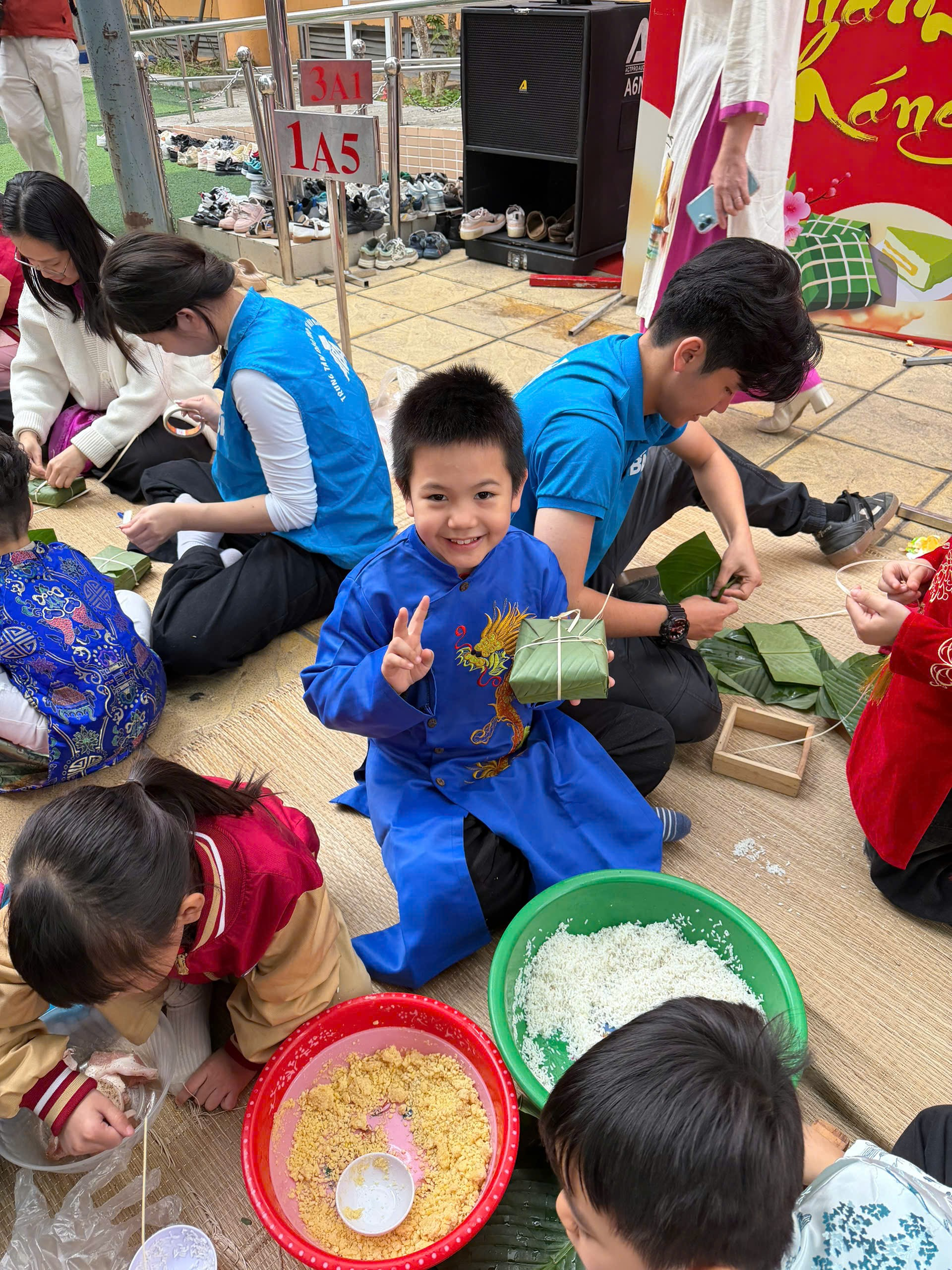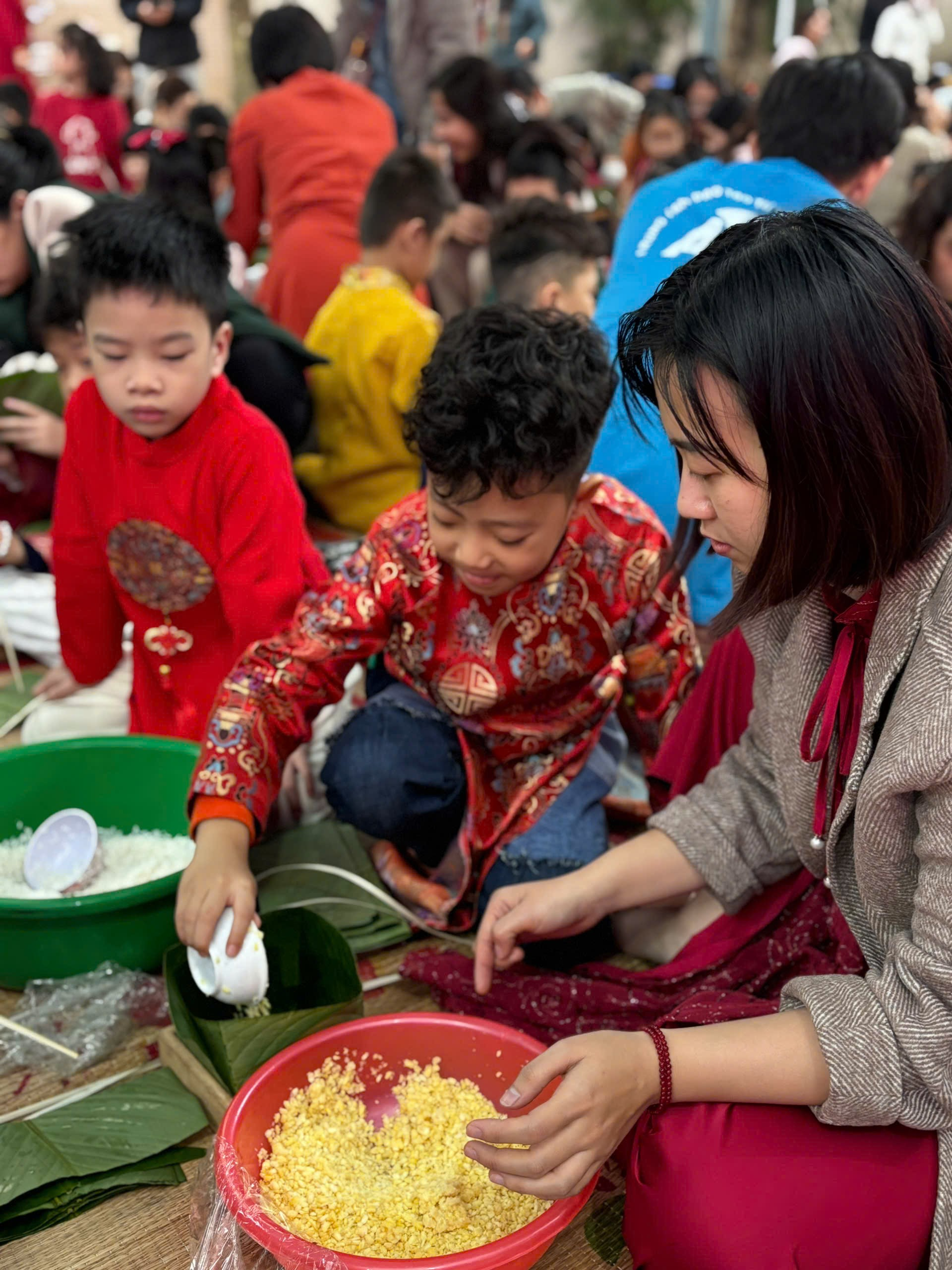 Dưới sự hướng dẫn tận tình của thầy cô giáo và sự đồng hành ấm áp của các bậc phụ huynh, những bàn tay nhỏ xinh lần đầu tiên được tự tay gói những chiếc bánh chưng vuông vắn. Từng lớp lá dong xanh mướt, từng hạt gạo nếp trắng ngần, từng sợi lạt buộc khéo léo… đều được các con nâng niu, gửi gắm vào đó niềm háo hức và sự tự hào. Ánh mắt chăm chú, nụ cười rạng rỡ của các em khiến không gian ngày hội thêm ấm áp, yêu thương.