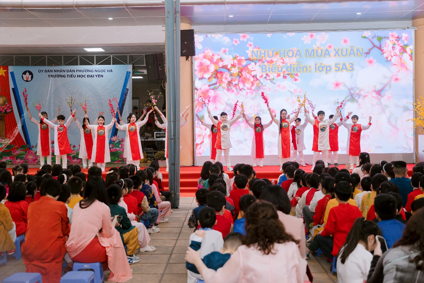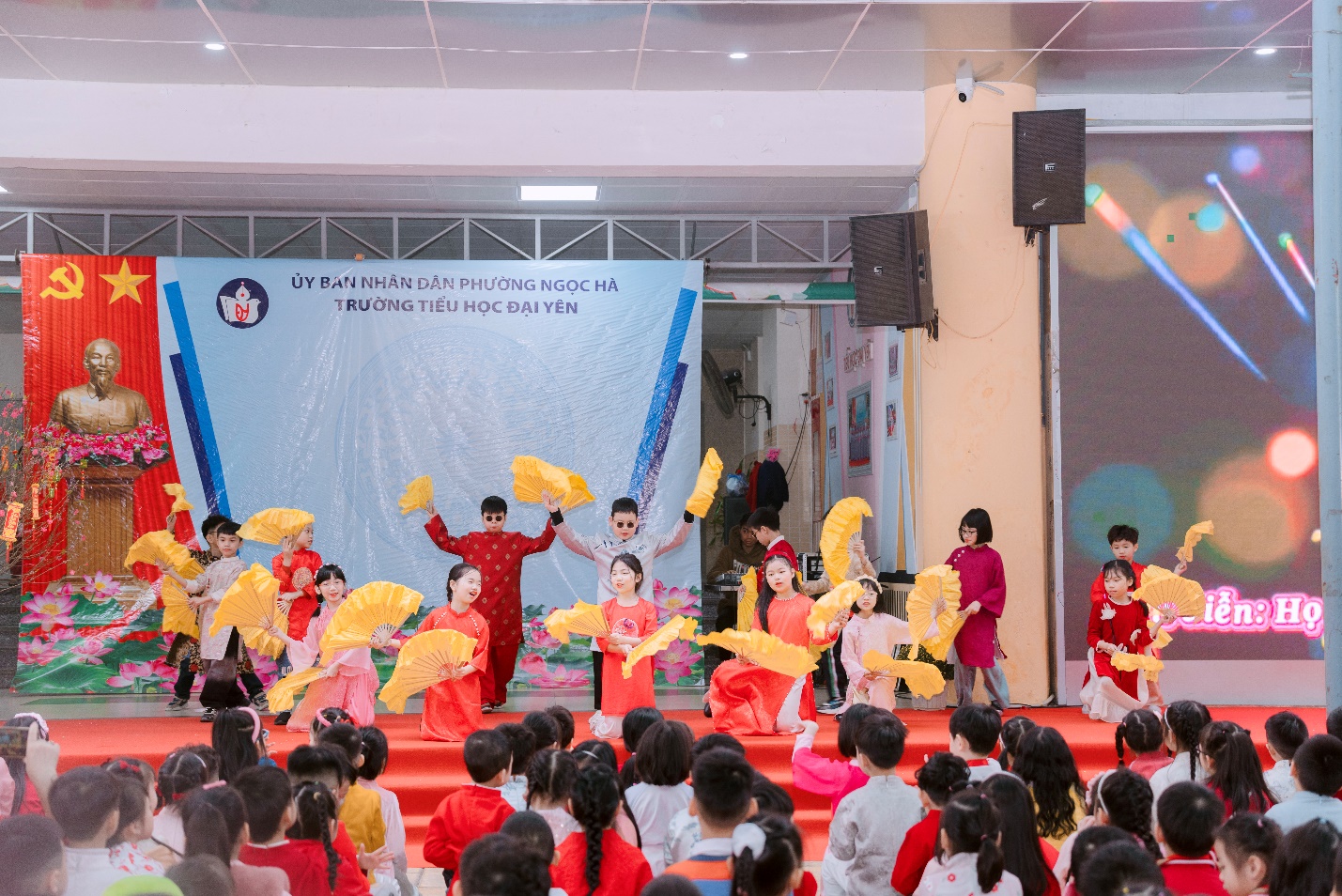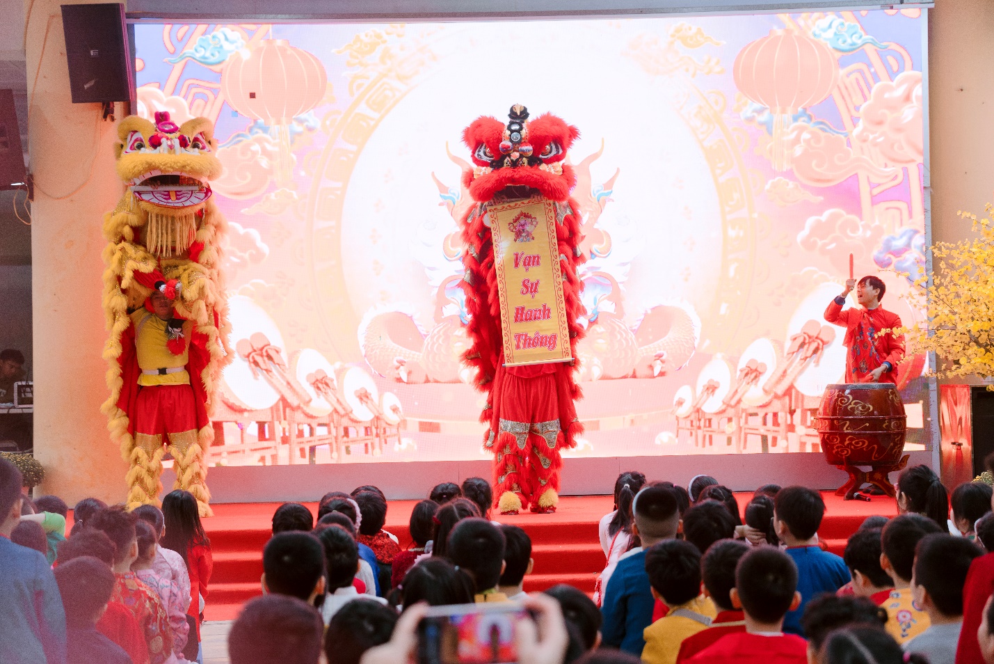 Sau phần trải nghiệm gói bánh chưng, không khí ngày hội càng thêm rộn ràng với màn múa lân tưng bừng sắc xuân và các tiết mục văn nghệ chủ đề Tết do chính các em học sinh biểu diễn. Tiếng trống lân rộn rã, những điệu múa vui tươi, những bài hát về mùa xuân, về Tết quê hương đã làm bừng sáng sân trường, mang đến niềm phấn khởi, háo hức cho thầy cô, phụ huynh và các em học sinh.