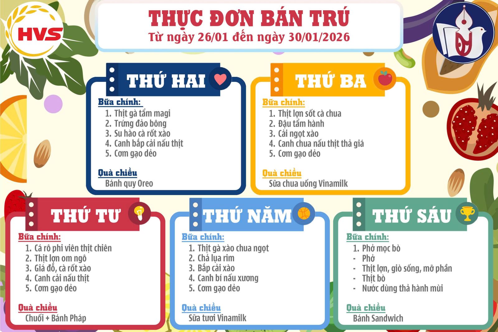 Thực đơn tuần 20 26/01/2026