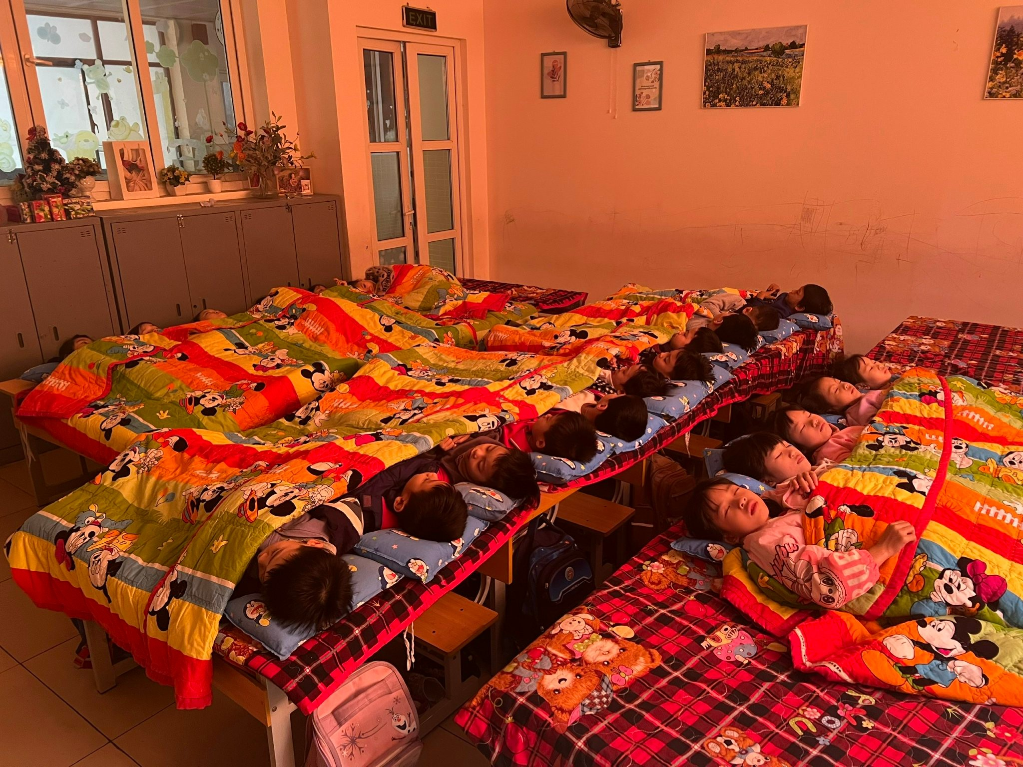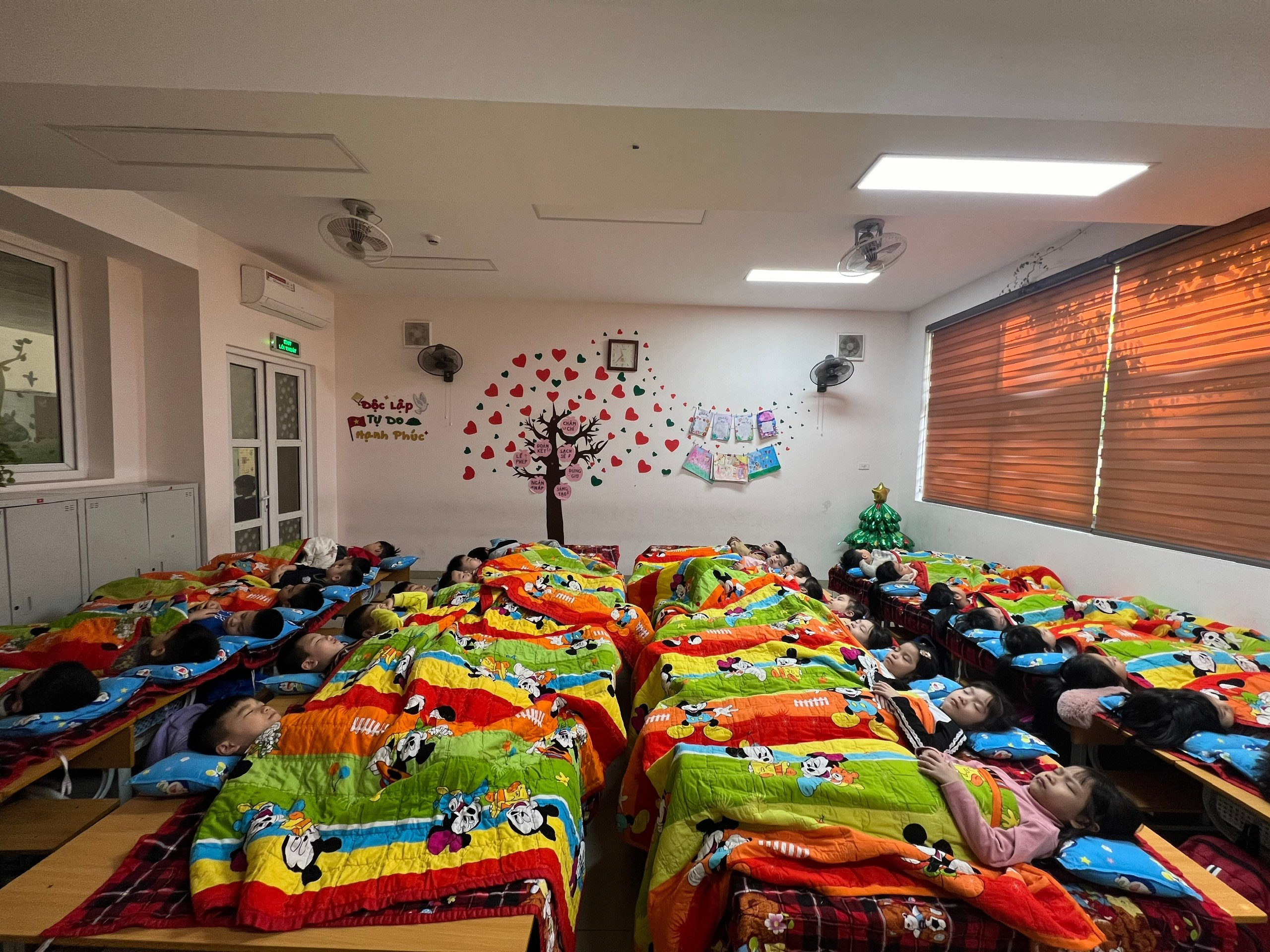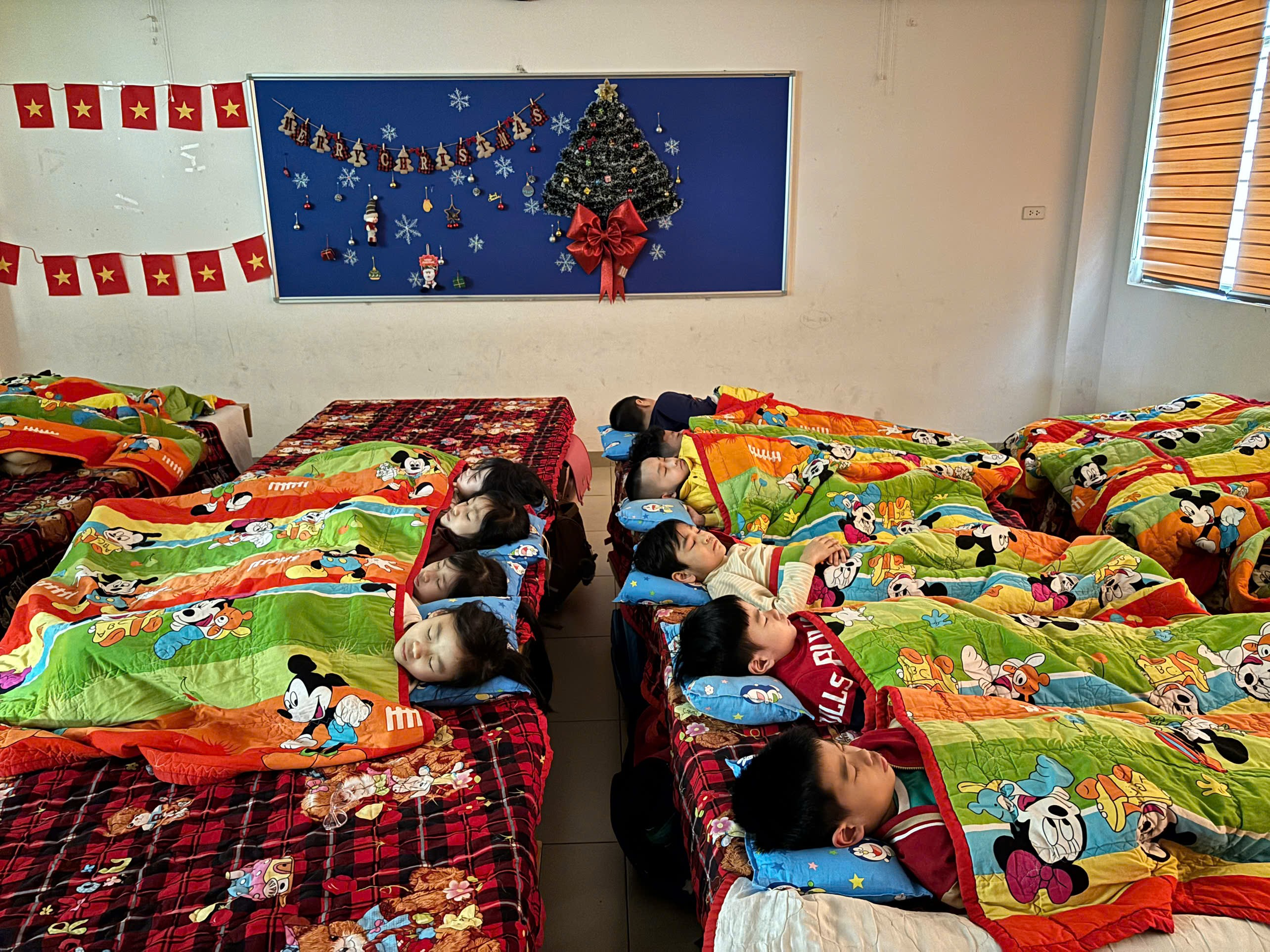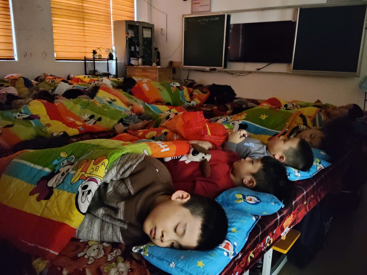 Trong không gian yên tĩnh, ấm áp ấy, các em nhanh chóng chìm vào giấc ngủ ngon, gương mặt thư thái, dễ chịu. Nhờ được giữ ấm chu đáo, các con ngủ sâu hơn, tỉnh dậy khỏe khoắn, sẵn sàng cho những tiết học buổi chiều.